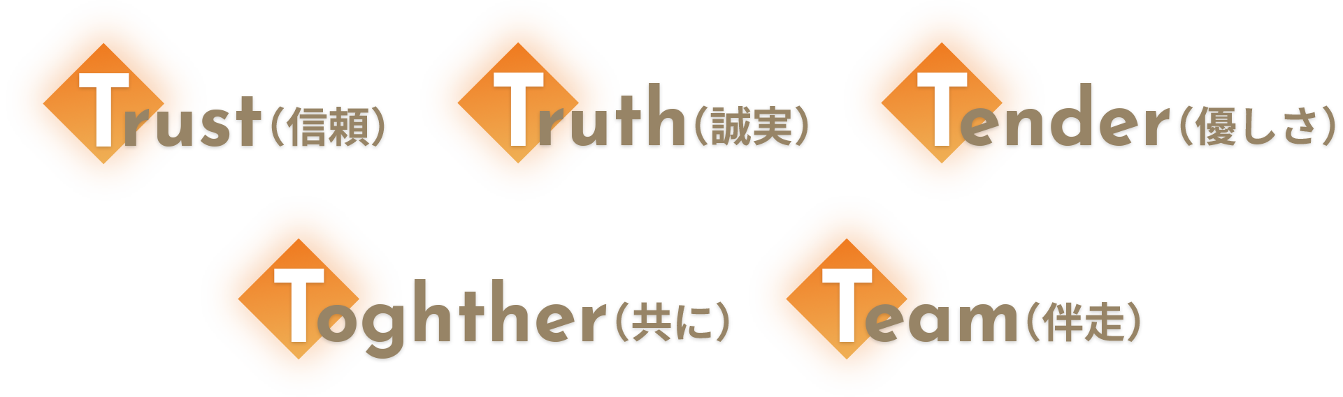 5つのTの信念に基づき、ご依頼者様を最優先として、よりニーズにあったご提案ができるよう、当事務所を開業するに至りました。
